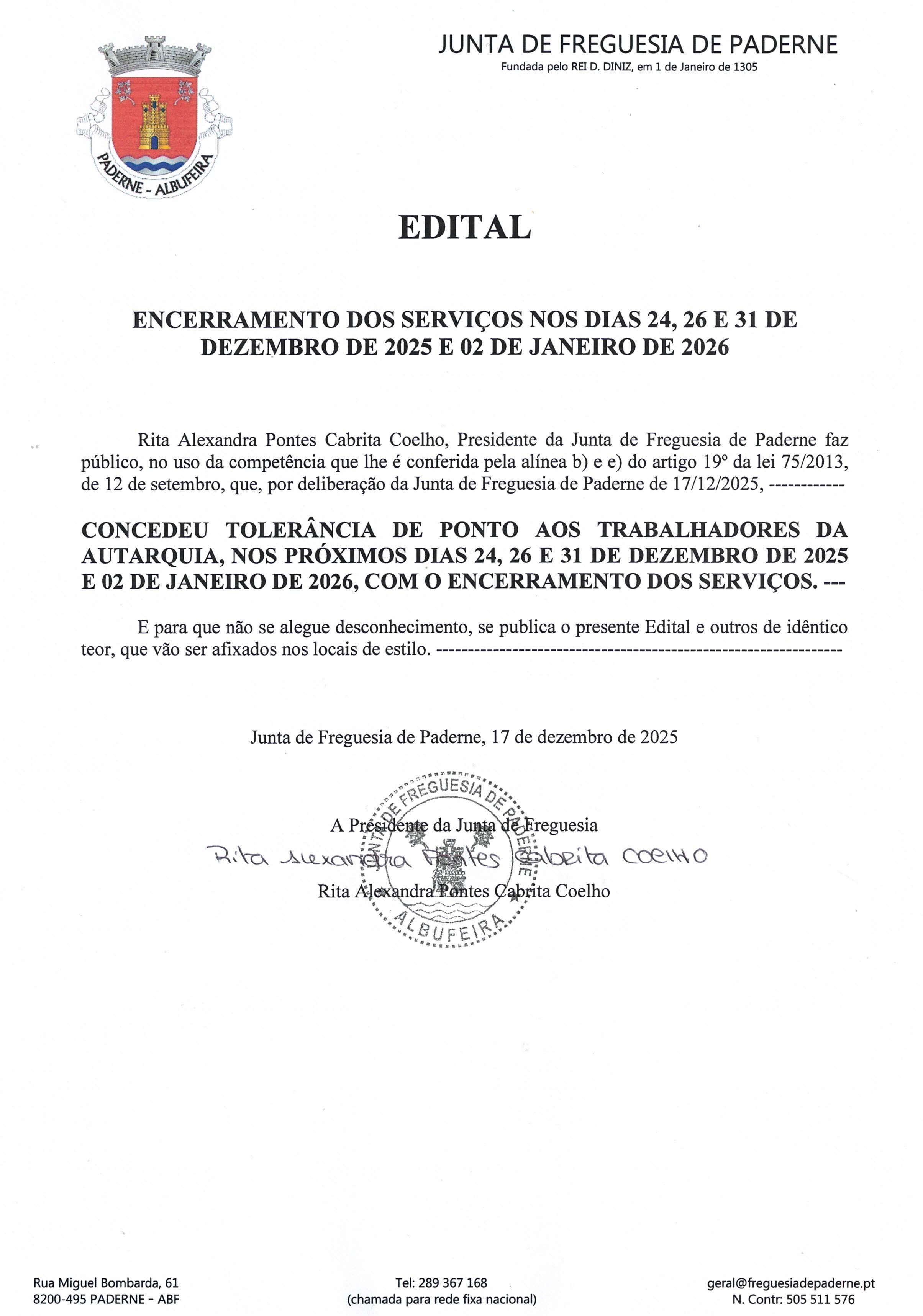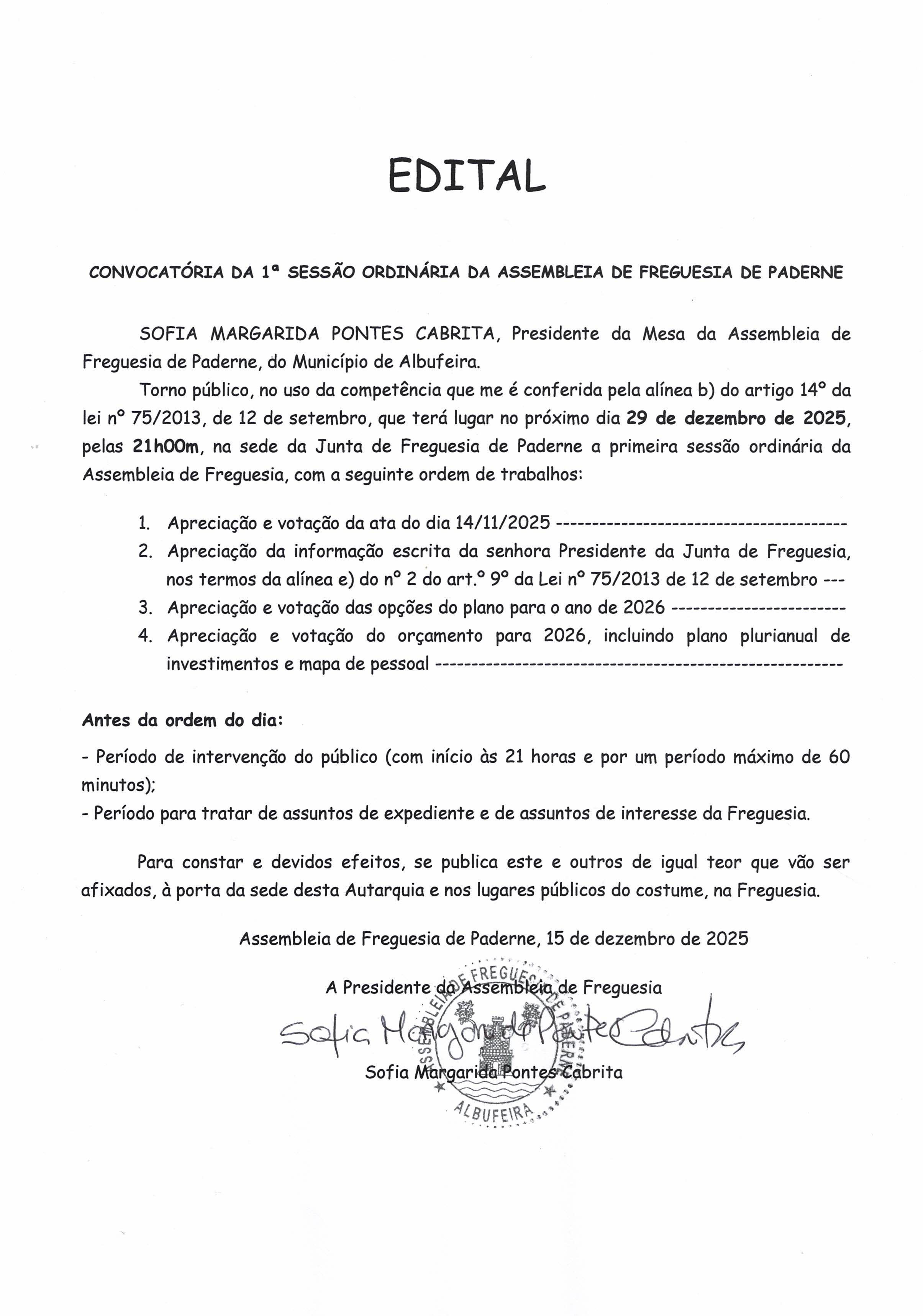 O Executivo que atualmente lidero, está disponível e motivado para servir Paderne sem excluir ninguém, em colaboração com toda a população e todas as instituições.